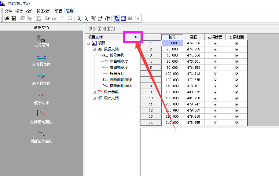 你好,感谢您多年来多纬地软件的支持与认可。数据窗口左侧的导航树,您可以点击按钮进行隐藏。